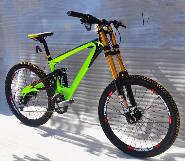 They achieve this using different frame layouts, materials, wheel sizes and components; Downhill bike in categoria biciclete. Featuring 27.5, 29, or mixed wheels and a full carbon frame. Going down.climbing is typically achieved via a chairlift or in the back of a shuttle vehicle. Downhill bikes require greater stability than any other mountain bike design, due to the gradients and terrain they race on.